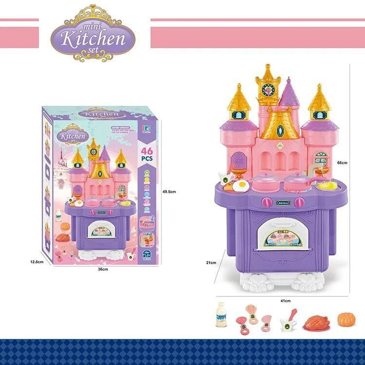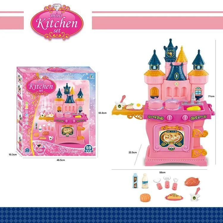 مطبخ القصر الواقعي مكون من 64 قطعة المطبخ اللي فيه كل أساسيات المطبخ من شوكة و معلقة و ينفع تحط مايه في الحوض و يغسل بالحنفية و المطبخ الواقعيو الحنفية اللي بتنزل ماية |