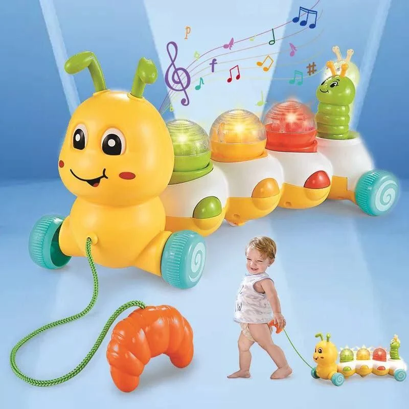 قطار الدودة القطار الموسيقي والدودة الراقصة اخر القطار وحبل لسحب القطار وتشغيل الموسيقي مع الحركة وانوار في القطار بيشتغل بالحجارة الطول ٣٠ سم |