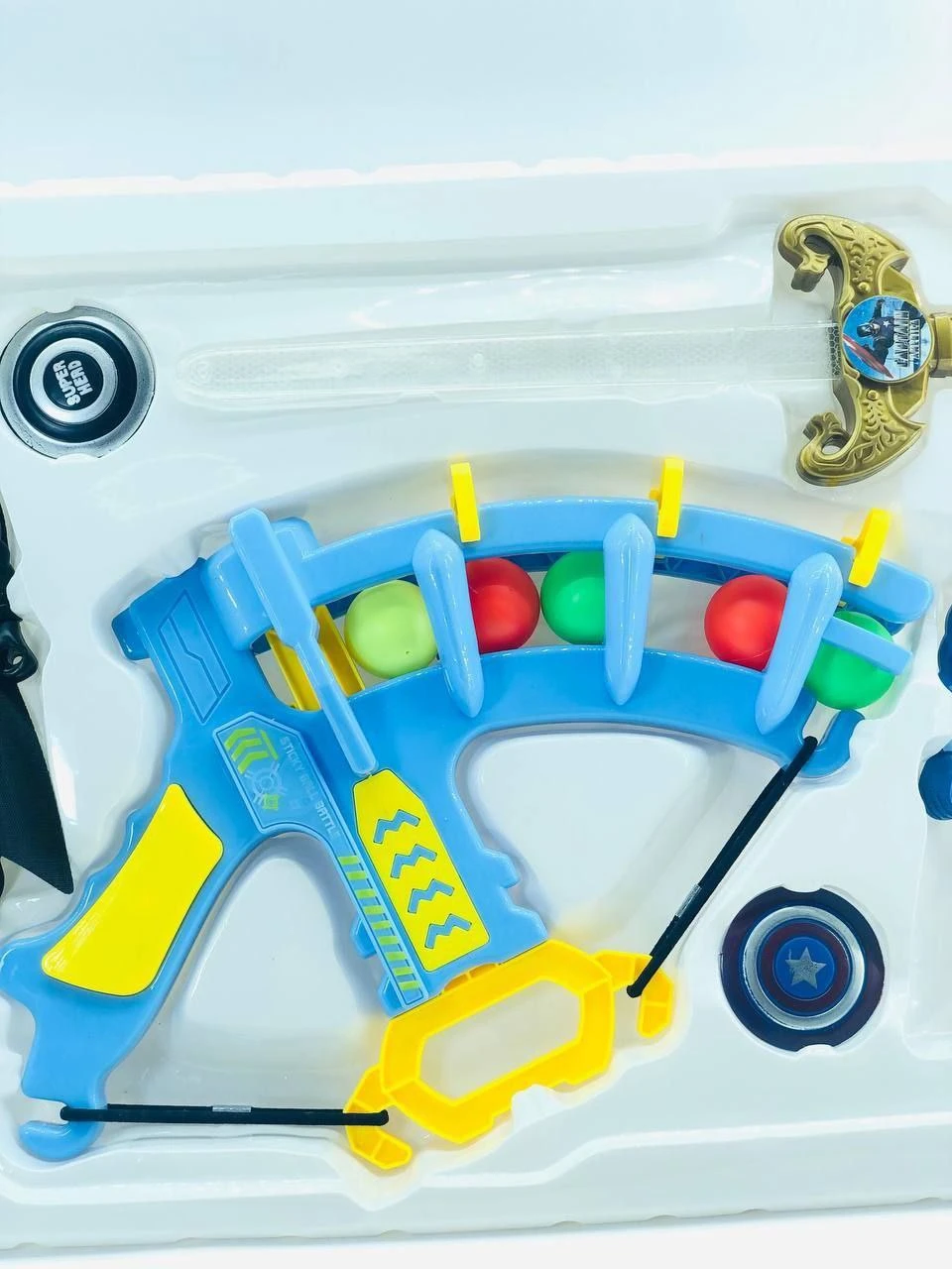 طقم ابطال افينجرز الطقم في 2 شخصية و الرمح بالكورات الملونة و السيف |
