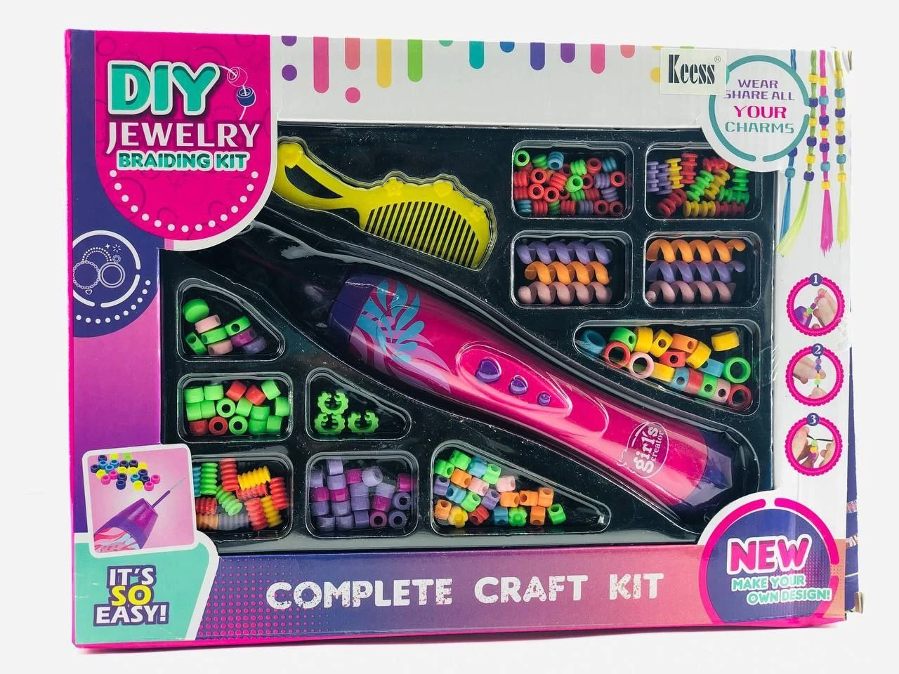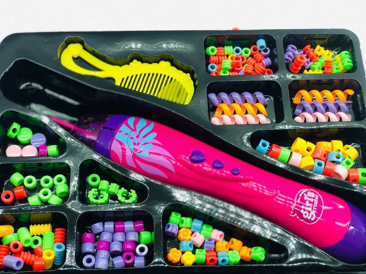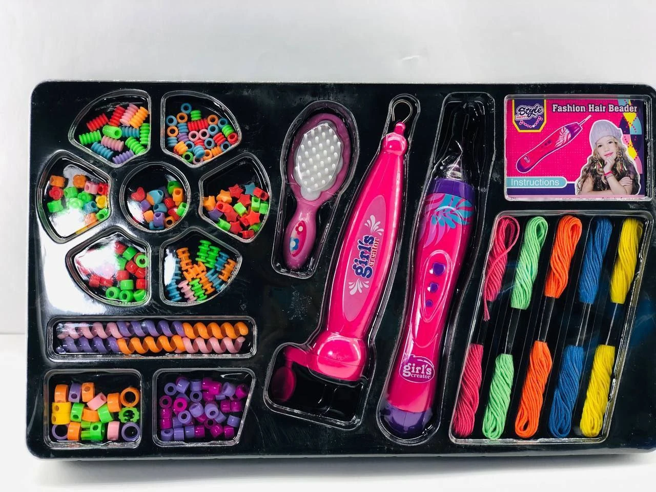 ماكينة ضفائر للشعر بالخرز و جميع اشكال الخرز الملونة مشط و2 ماكينة خرز و ضفائر الشعر الملونة |