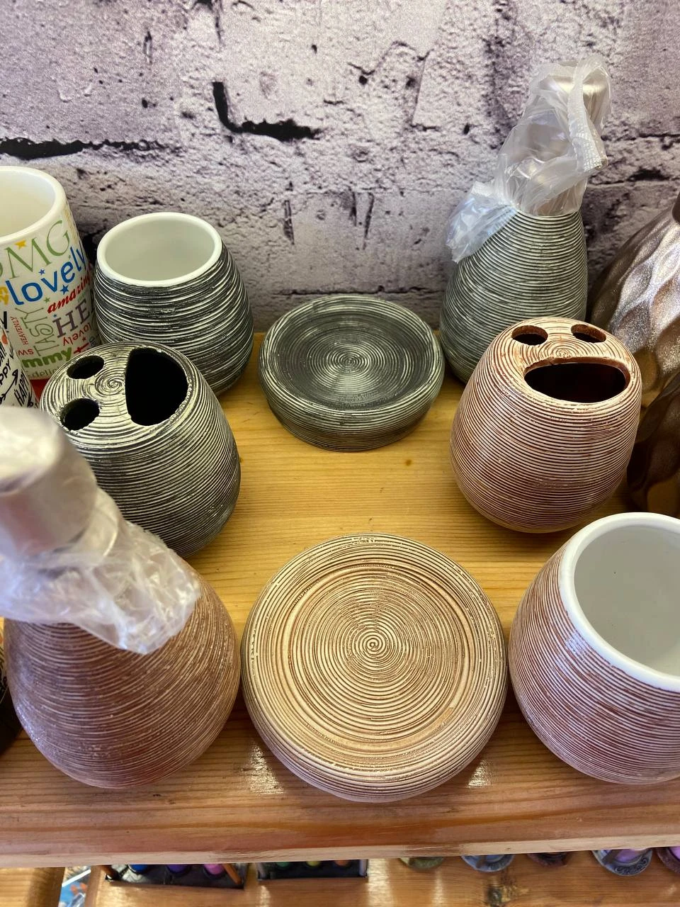 طقم حمام ديكور بشكل رخامي الطقم مكون من اربع قطع - حامل صابون سائل - حامل فرش اسنان - حامل صابون - حامل فرش |
