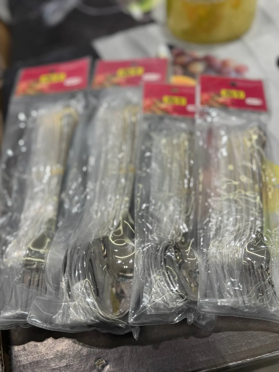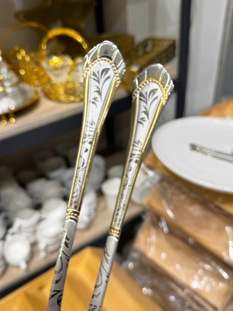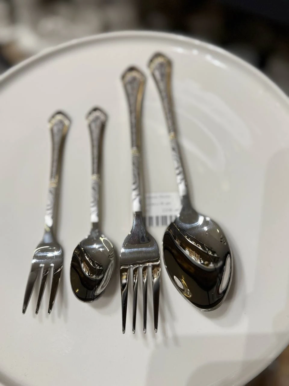طقم شوك ومعالق حفر ليزر استيل 18/10 مدهب |