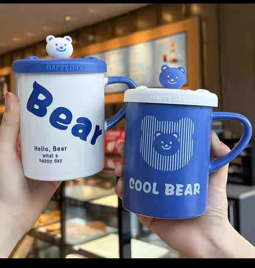 مج دبدوب ابيض ف ازرق بمعلقه وغطاء يحافظ على مشروبك |