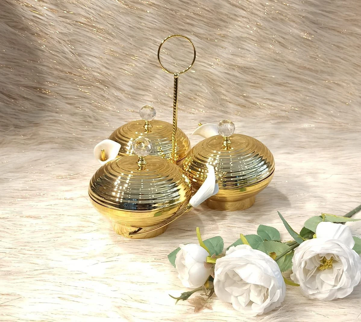 تلت قطع مع بعض من طقم التسالي الحجم الكبير |